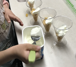 幼児のお手軽クッキングでは生クリームから泡立てるなどという高度な技は使いません.今度こそ完成!